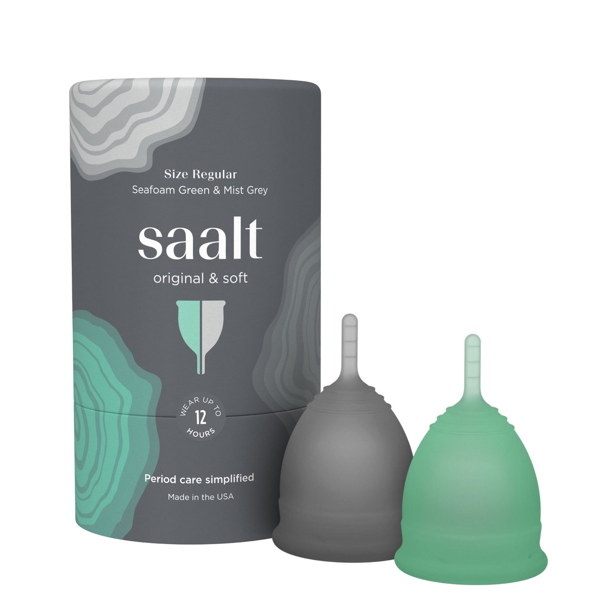 Saalt Menstrual Cup Twin Pack - Regular Seafoam Green & Mist Grey