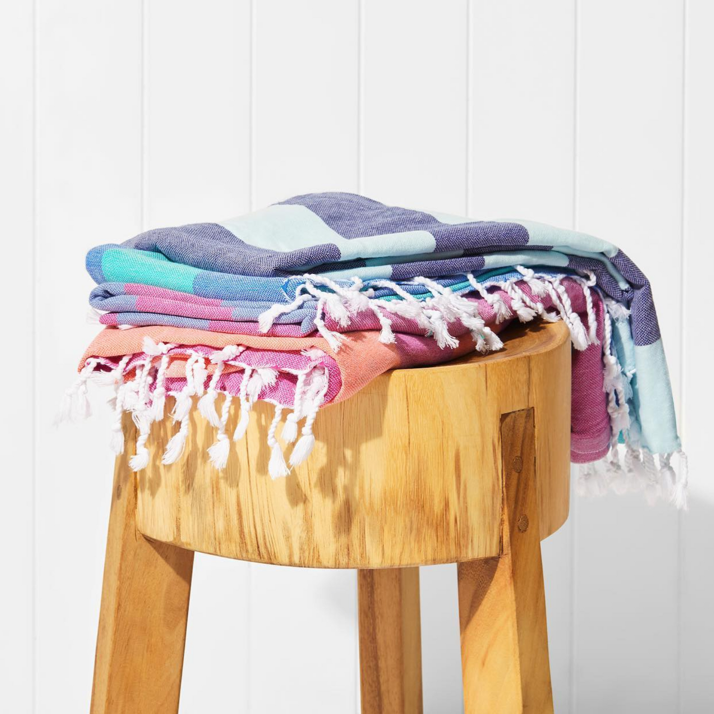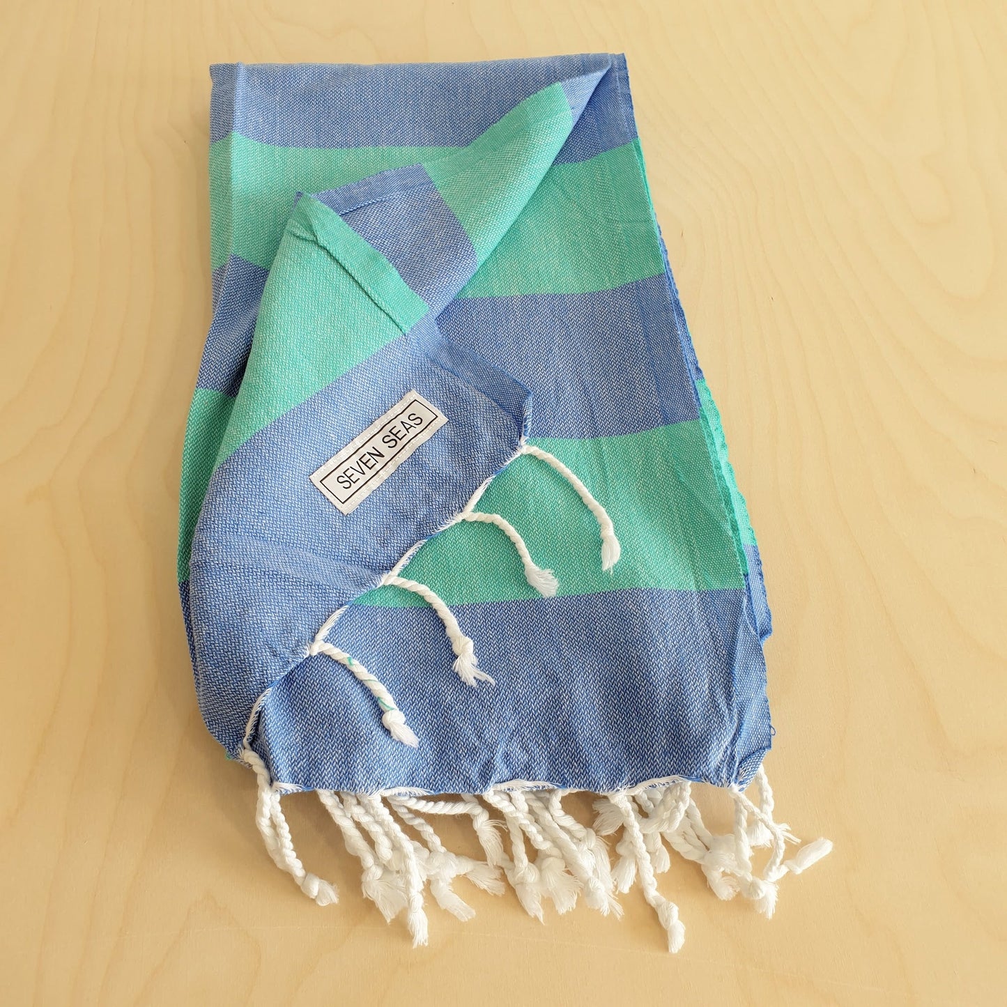 Seven Seas Turkish Towel / Sarong - Classic Sunny Stripe - Royal Blue & Sea Green