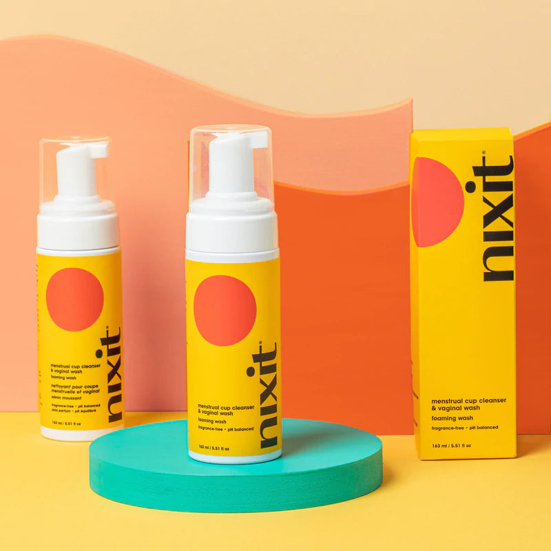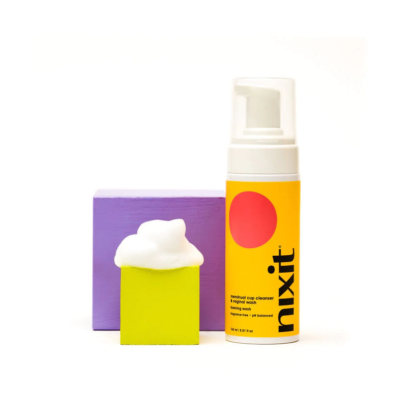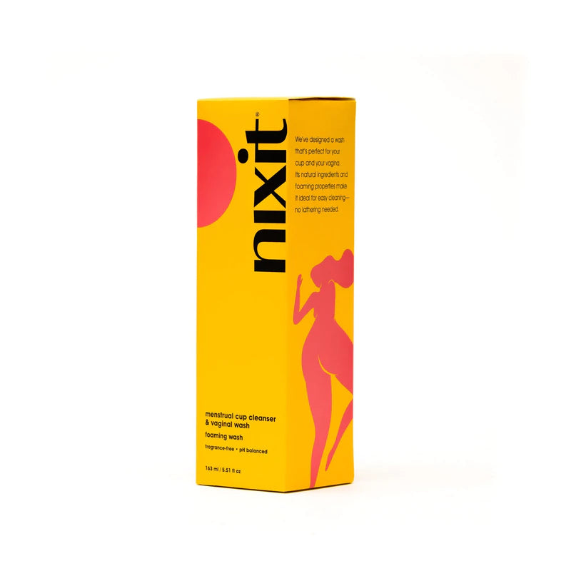 Rinse your menstrual cup with cold water and pump foaming wash directly onto the cup. Thoroughly clean the cup and rinse well with warm water. For personal cleaning. Only use Nixit wash externally.