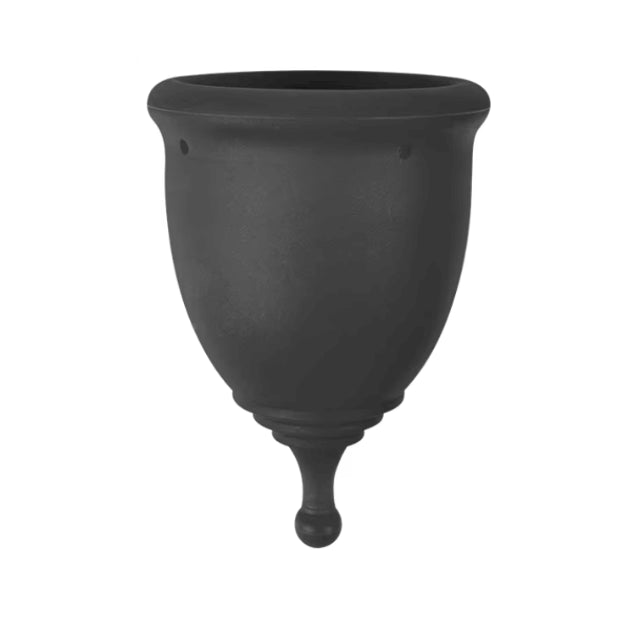 It features a seam-free, classic bell-shaped design with a short nib stem for comfort. Holes in the rim assist with creating a firm seal for a leak-free period and grip rings at the base of the cup assist with removal.