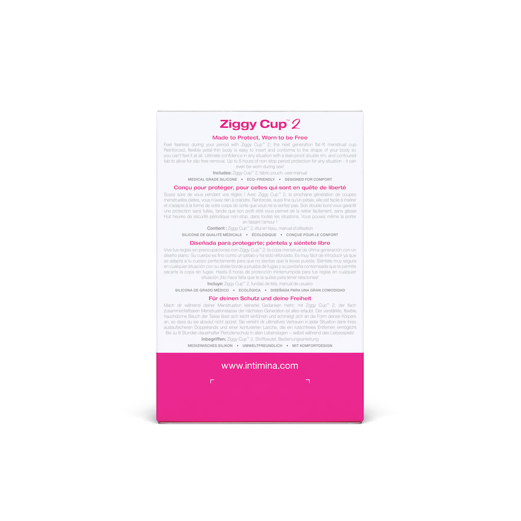 Feel fearless during your period with Ziggy Cup 2; the next generation flat-fit menstrual cup.