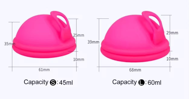 | Large | Heavy flow | 60ml | 68mm x 39mm |